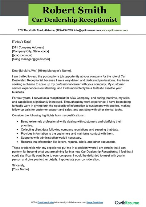 Avoid common mistakes in a car dealer cover. Vetted by career experts at enhancv. Include powerful action words throughout your car dealer cover letter.